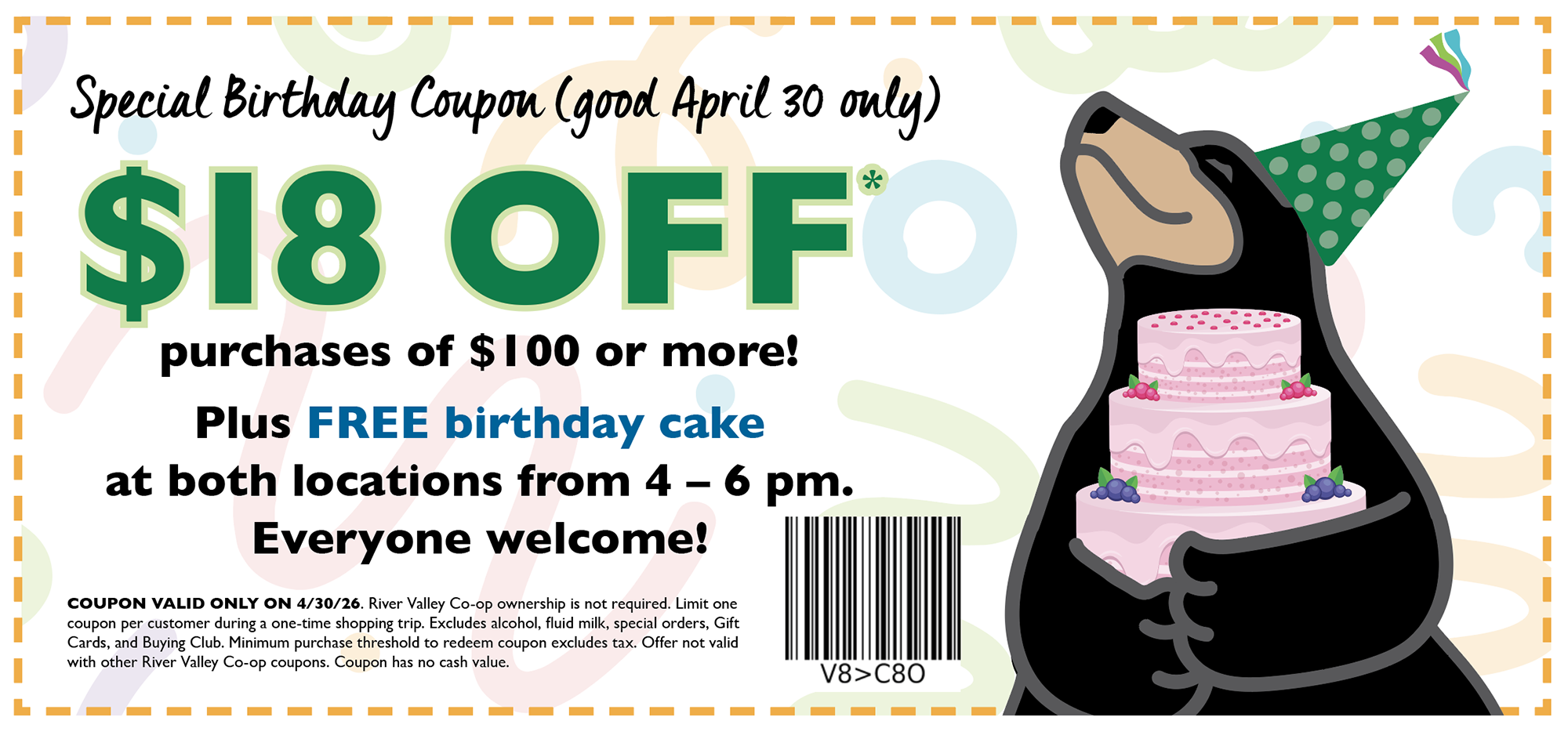 River Valley Co-op is a full service, community-owned food cooperative, specializing in fresh, local and organically grown groceries, prepared foods, wine and beer, wellness, and bulk items. Everyone is welcome to shop, co-op ownership is not required.