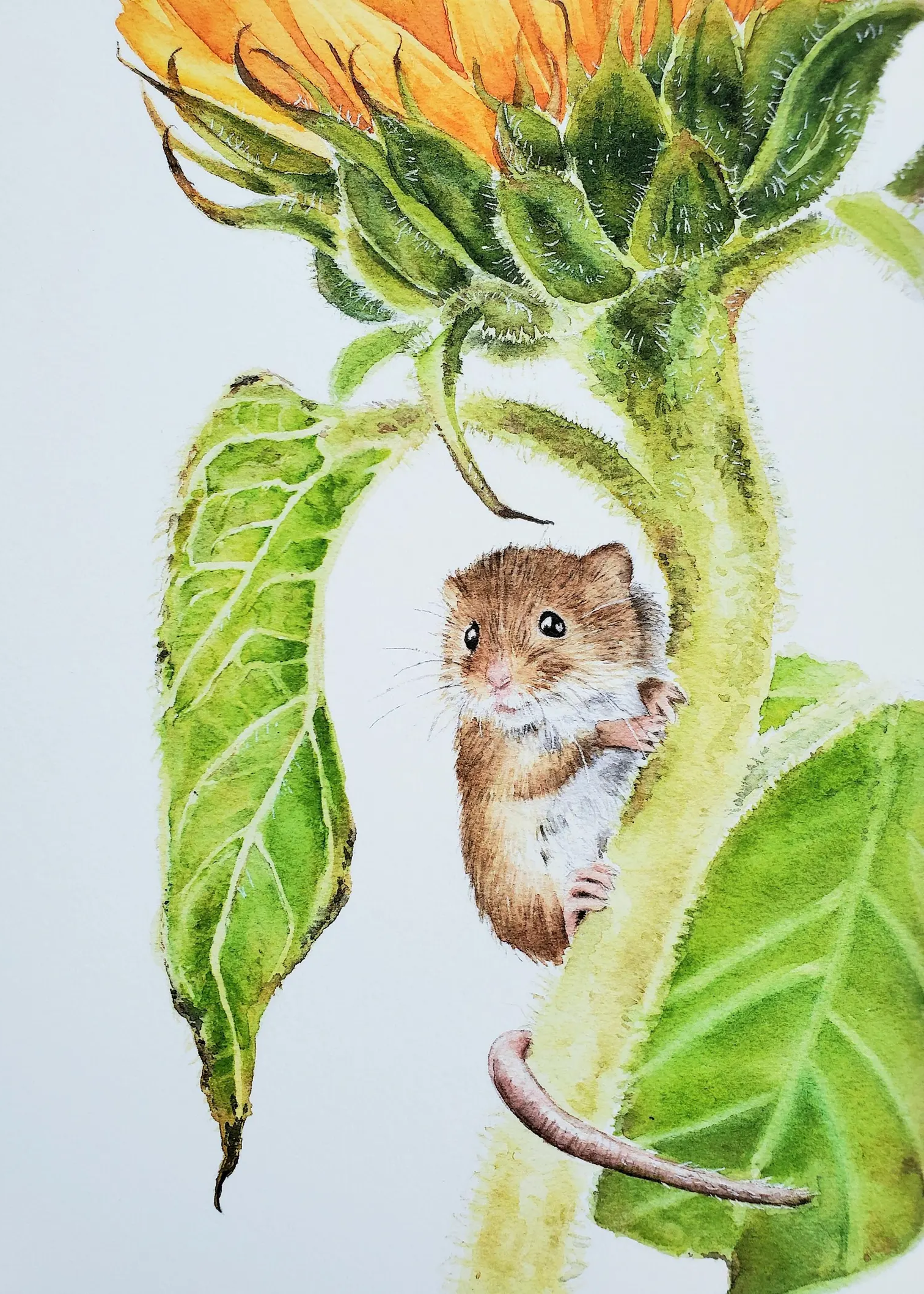 I make small prints, stickers, and cards of my gouache paintings and colored pencil drawings. My subjects are mostly plants, flowers, and animals!