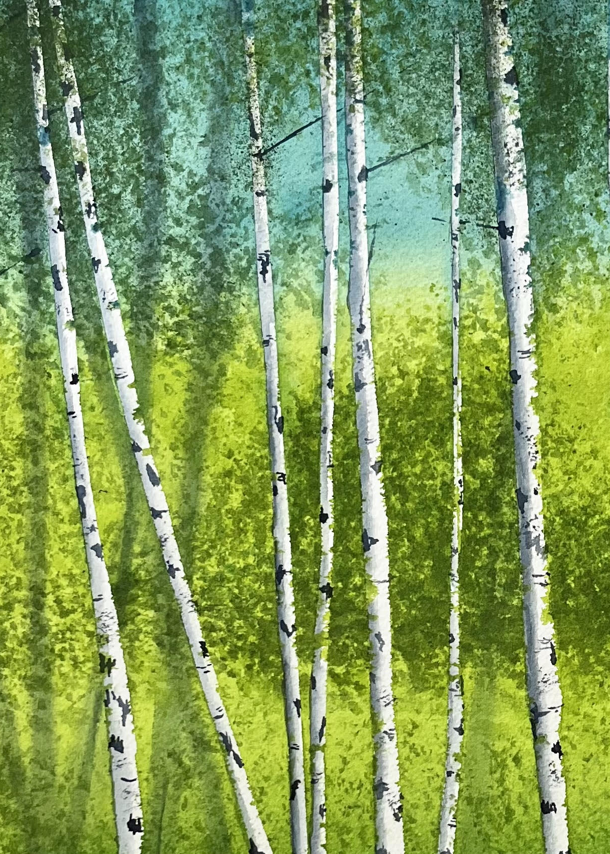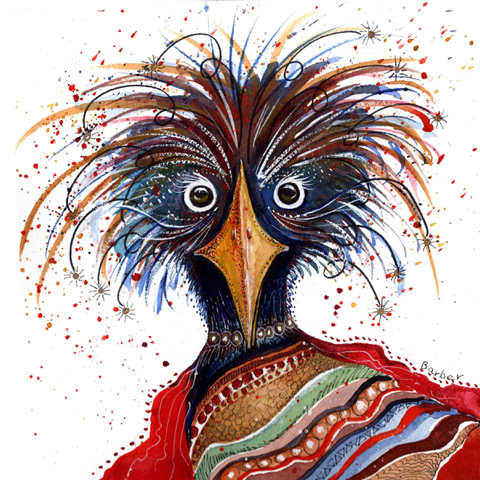 Local painter Lois Barber creates watercolor paintings of whimsical "Birdz" and lovely landscapes.
