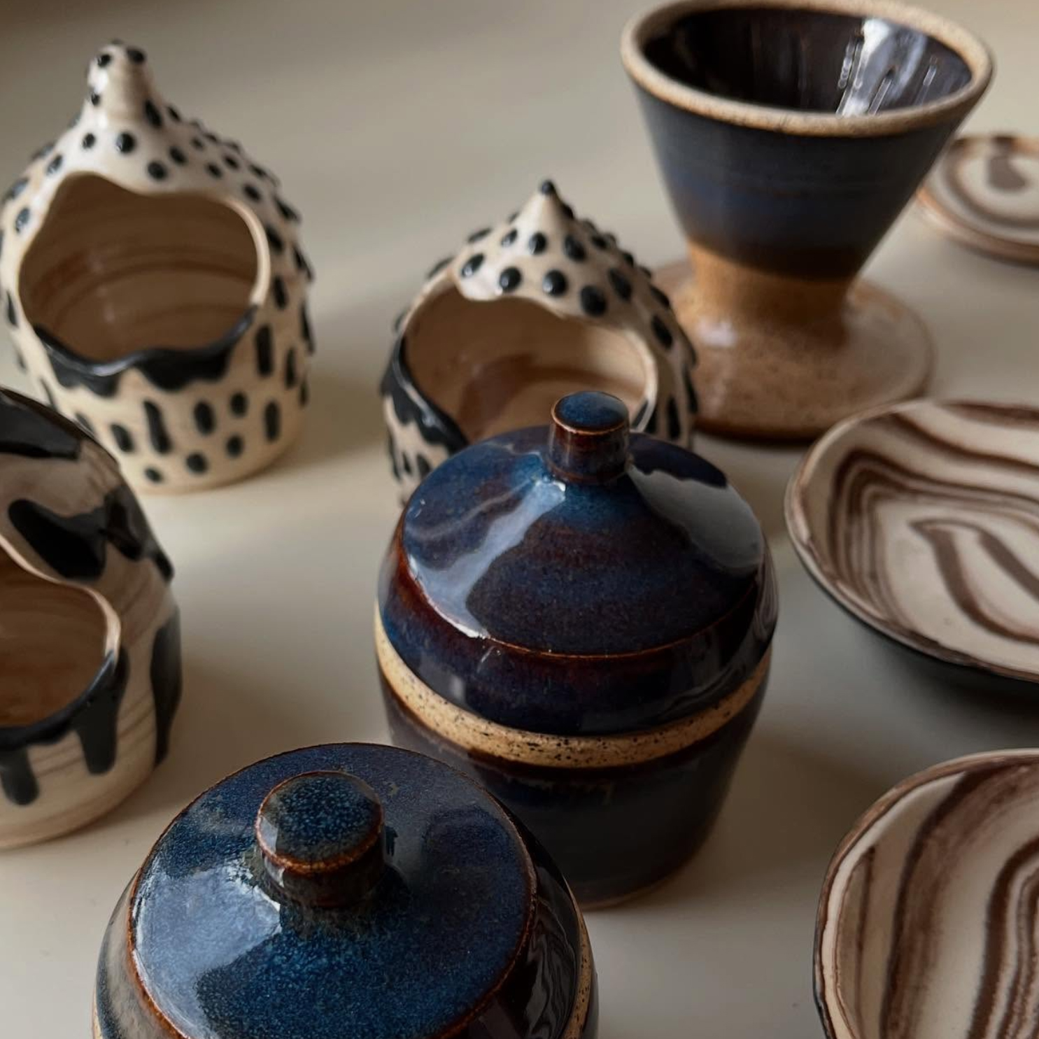 Functional! Experimental! Iterative! Playful! Elegant! Exploratory! Sometimes even evocative! Everything is made with clay. Mugs, bowls, plates, pitchers, teapots, vases, flower pots, and almost anything else your heart desires!