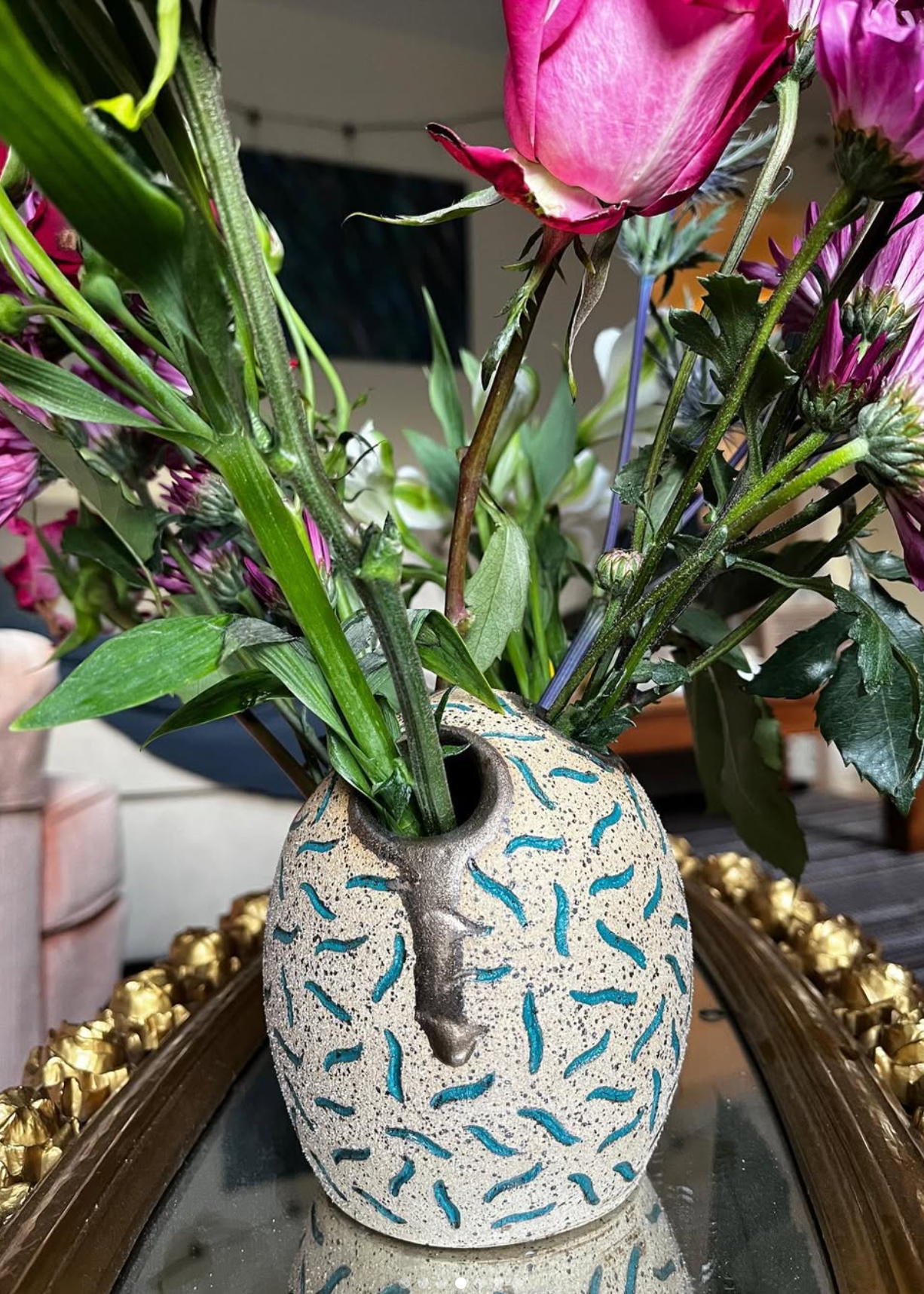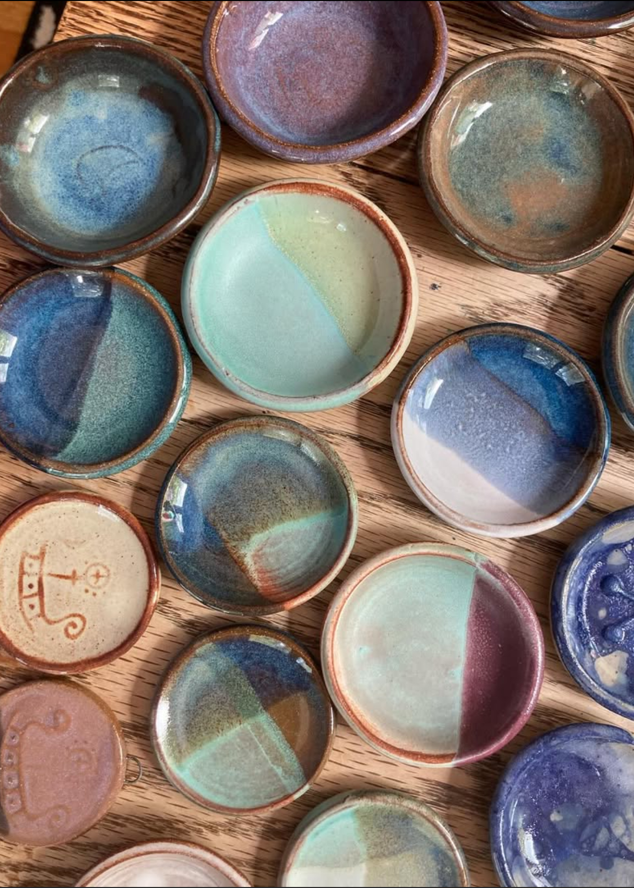 I am a local potter hand building one-of-a-kind functional, often-whimsical stoneware pieces for the home and garden. All work is food-safe, microwave and dishwasher-safe and has been created with care.