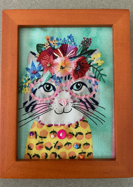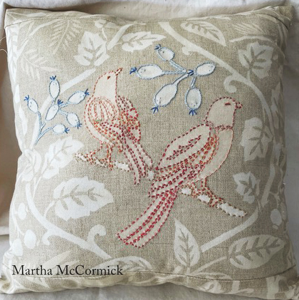 I create hand-embroidered and embellished pillows, framed hand-embroidered and embellished pieces, and fabric bunting ("banners") for home décor; great for children’s rooms, porches, and more!