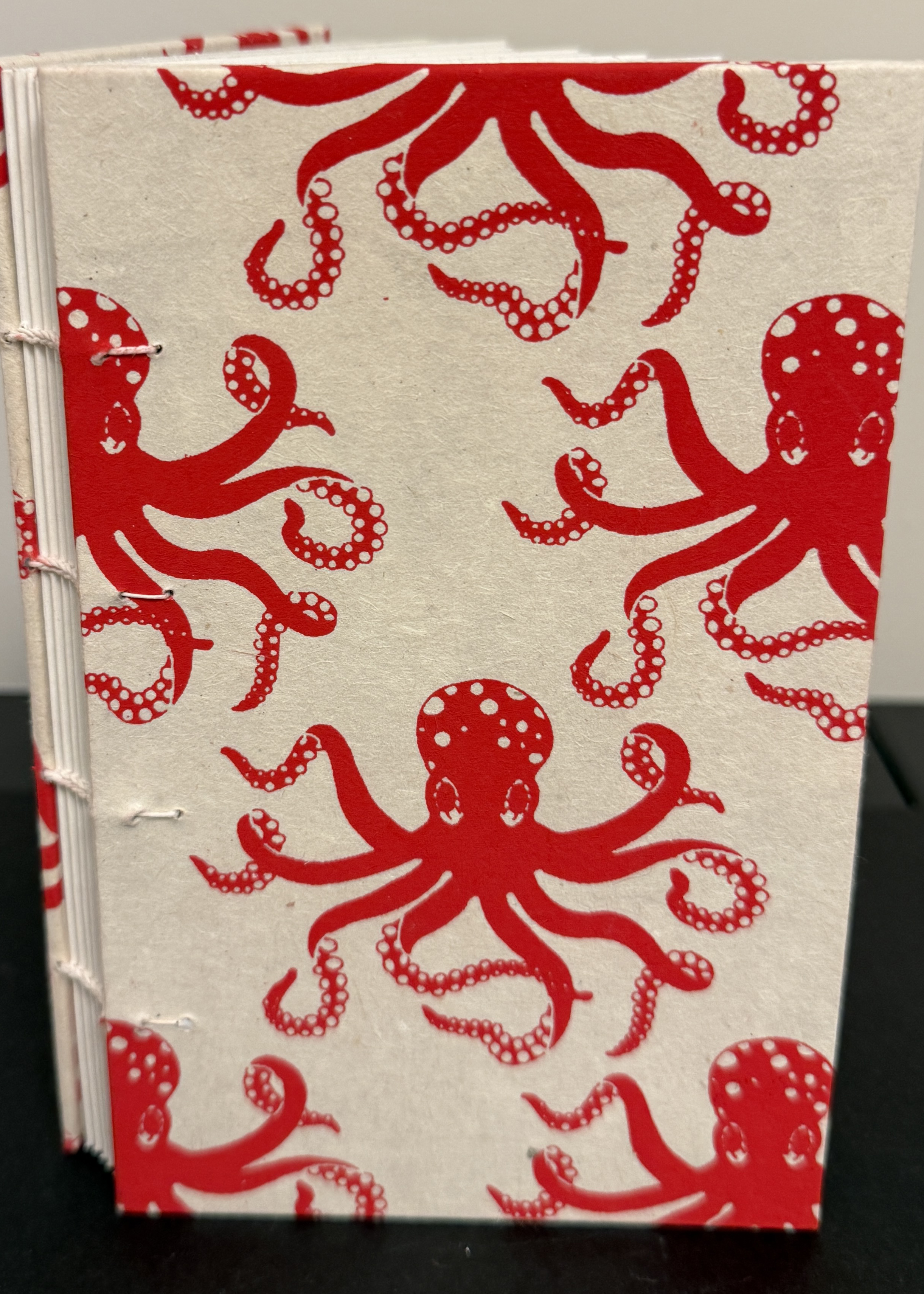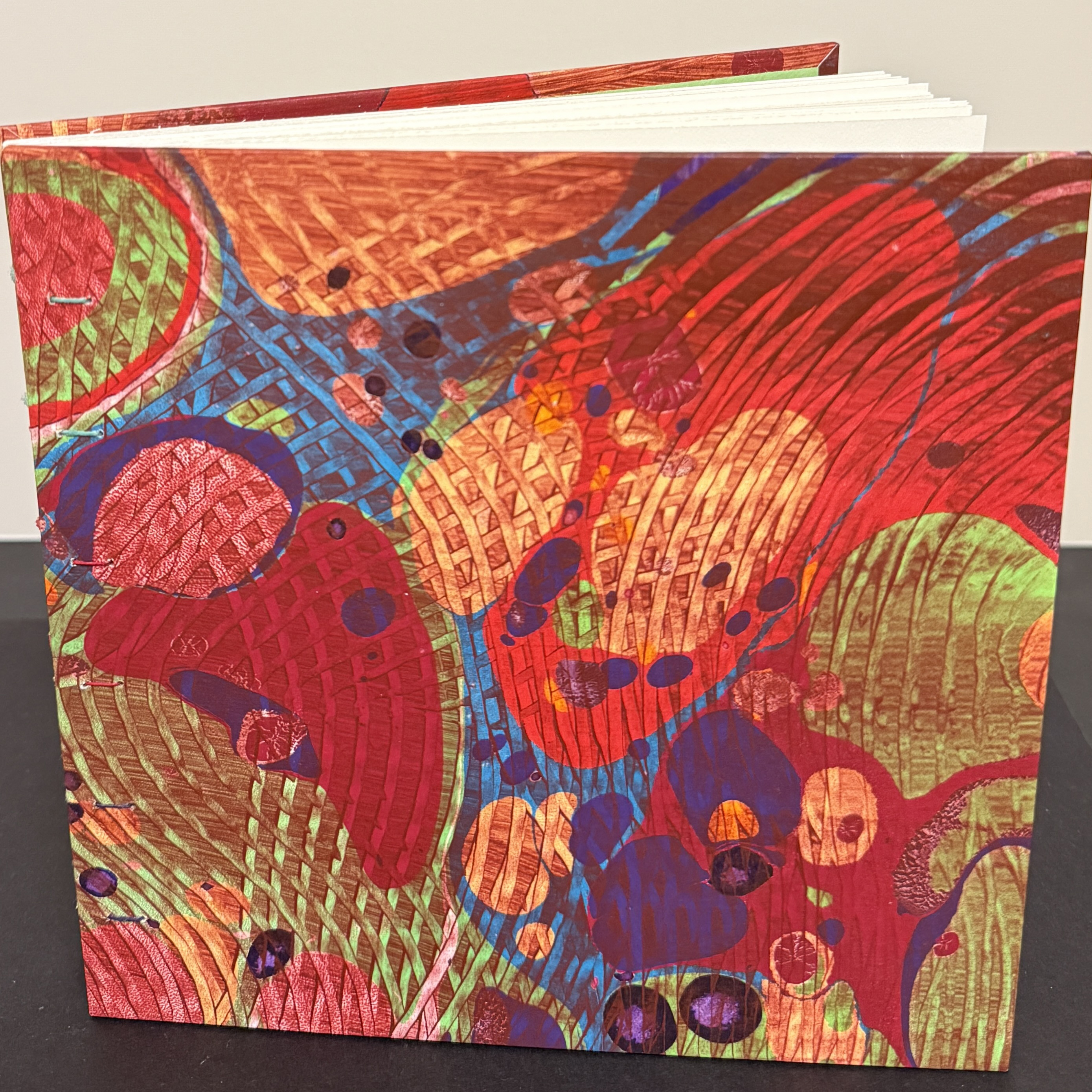 Laurel Rogers' handmade books are sewn with a coptic binding and sized for pockets, briefcases, or gallery installations. Covers are made with marbled papers, paste papers, Japanese paper, handmade paper, and design papers.