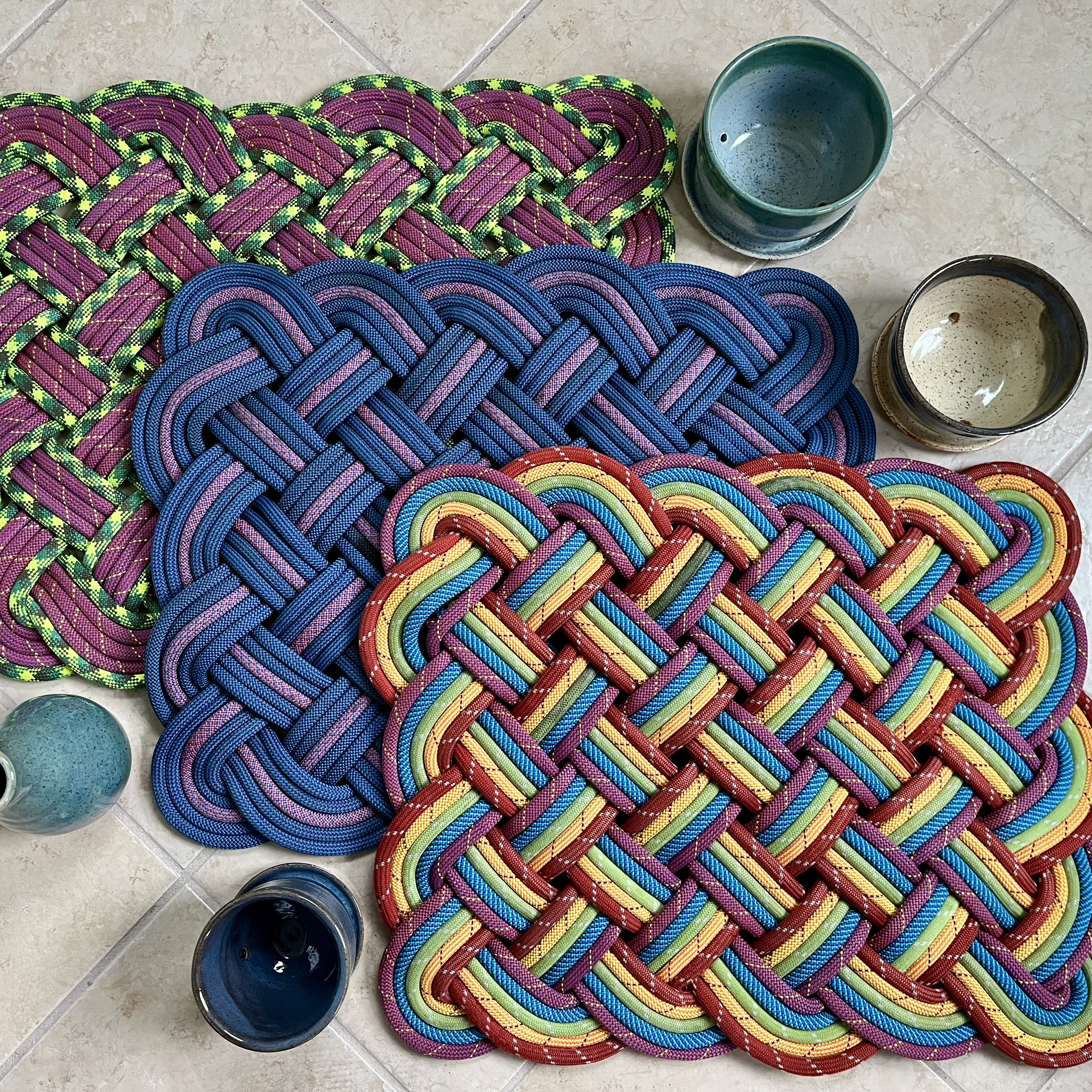 We are Easthampton crafters. Marci throws clay vases and planters, while Dan diverts retired climbing ropes from going to the landfill and turns them into woven rugs.
