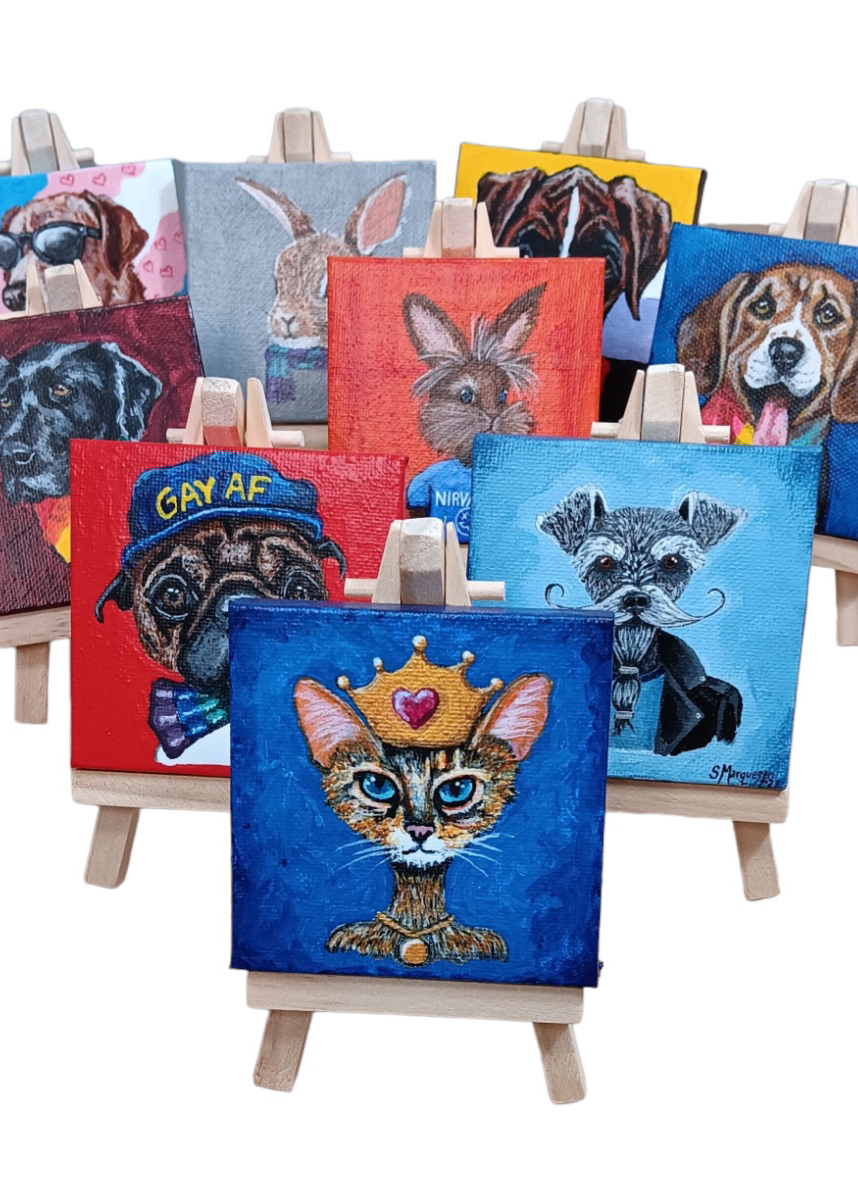The Shiny Bunny offers products created to bring smiles and speak to the heart of animal lovers! We offer paintings, magnets, greetings cards and more. Come see the famous Emotional Support Pickle!