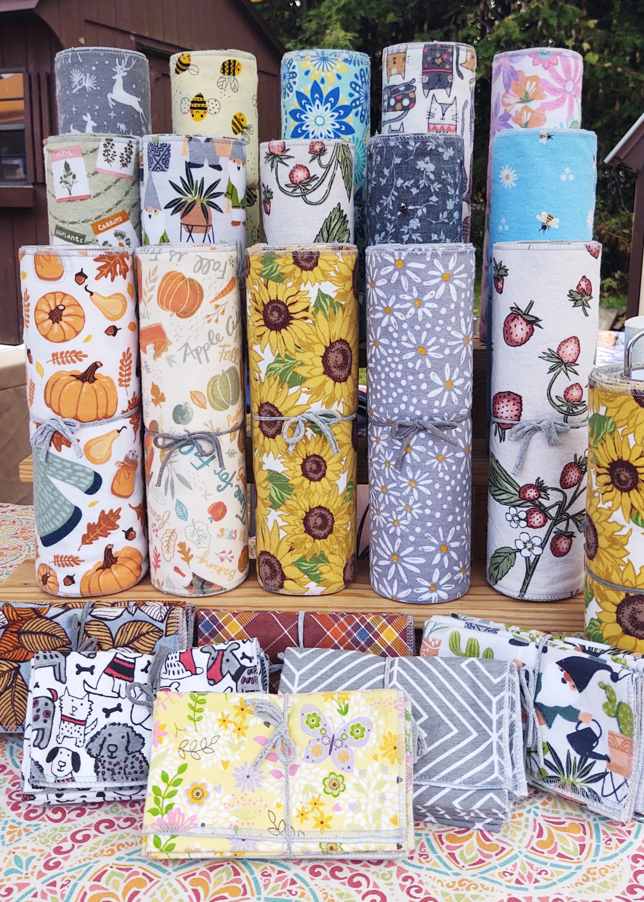 Gail Modugno makes flannel paper towels as a practical substitution for traditional paper towels! Made from 100% pre-washed cotton flannel. Use, wash, repeat—and smile because your footprint just got smaller!