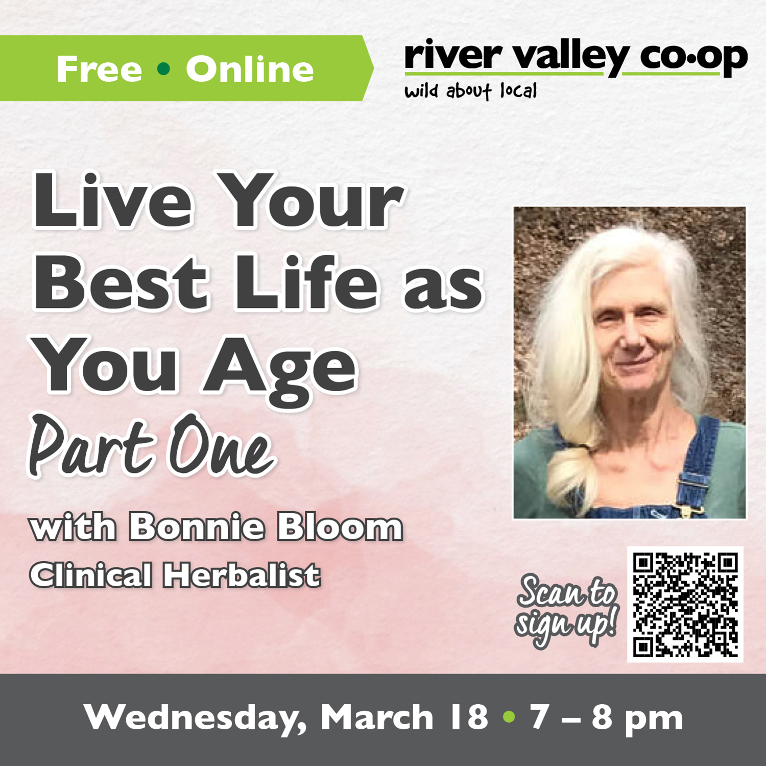 Join Bonnie Bloom, clinical herbalist with 30 years of experience, for a discussion about aging. We designed a two-part series with Bonnie where she will be addressing specific topics.