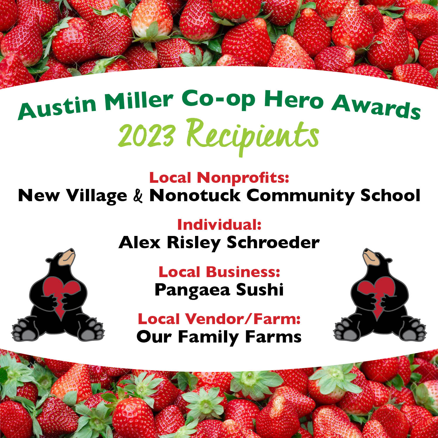 Don't miss our annual Strawberry Ice Cream Social and Austin Miller Co-op Hero Awards on Thursday, June 15, 2023, where we will once again recognize those people and organizations that nurture and sustain our co-op and our community!