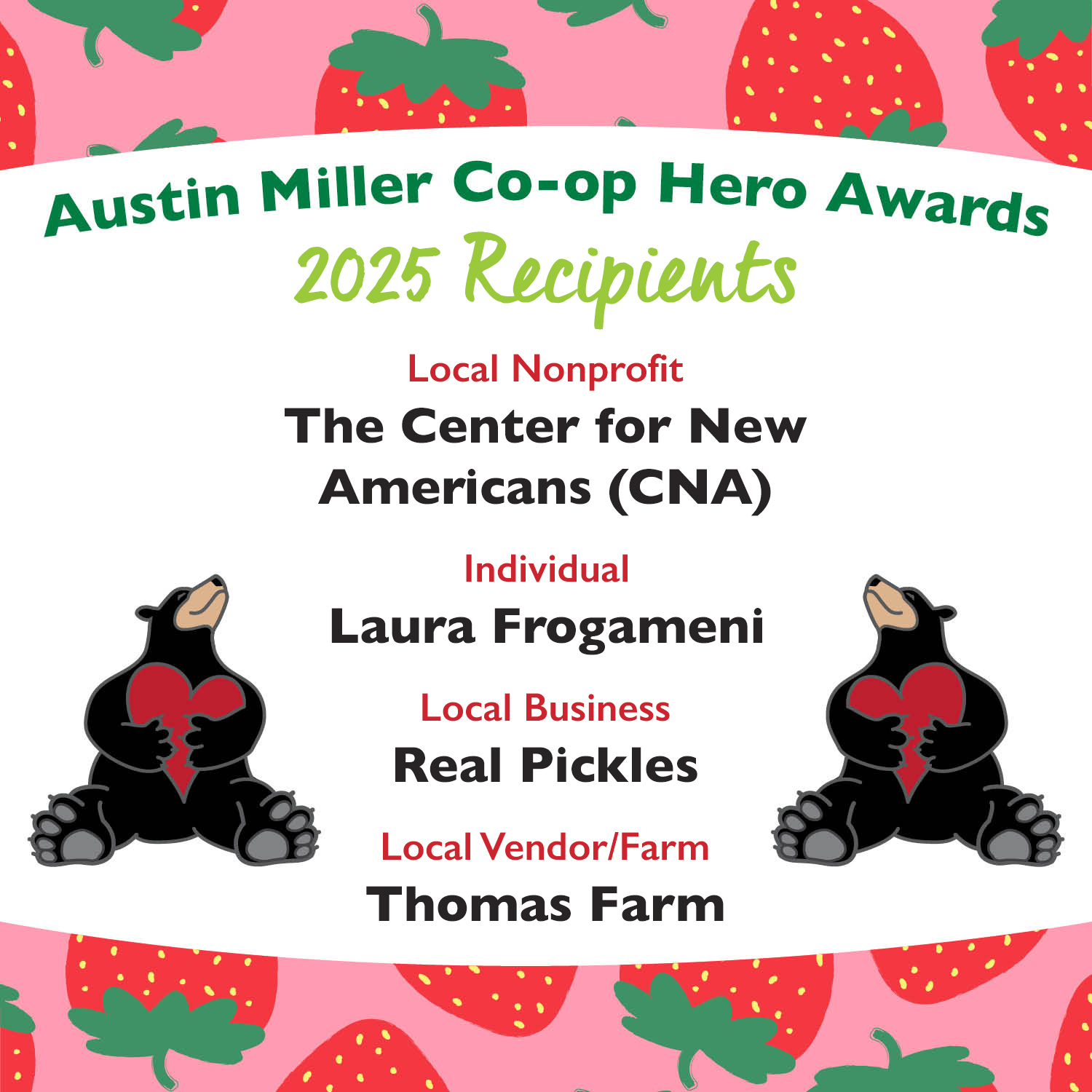 Our Strawberry Ice Cream Social and Austin Miller Co-op Hero Awards are Thursday, June 12th, 2025! Join us for this annual celebration of the summer strawberry harvest and the local nonprofits doing good work in our communities.