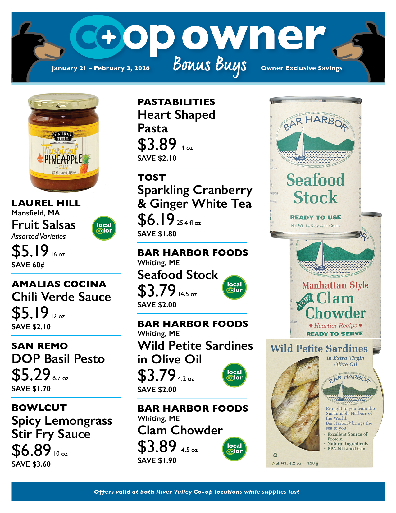 * Sale items are spread out over two or three-week promotional periods each month. Because Co+op Deals is a national promotions program for food co-ops who are members of National Co+op Grocers, please note that not all products featured in the flyer will be available at all co-ops.